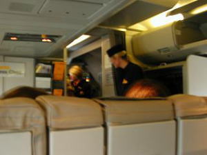 ![]() ビジネスと言っても、エコノミーと同じ席 (3列の真ん中の席には誰も座りません) |