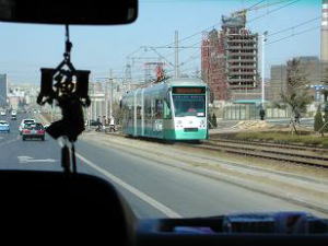 ![]() この辺りはIT関連の企業が目立ち、 大連中心部と結ぶトラムが走っていた。 |