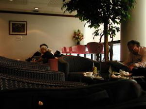 ![]() 狭く混みあっている JALだけでなく外が見えるラウンジは狭い |