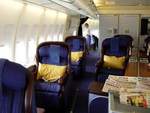 ![]() ビジネスクラスの新シート こちらは昨年9月にA340-600で搭乗済み |