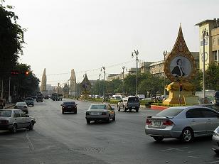 2005年の誕生日後、主な建物に肖像が常設され、 今では何とも思わなくなったが、 2000年頃にこの道を通った時は、巨大な肖像に驚いた。 そういえば、タイで黄色が目立ち始めるようになったのも、 2005年ごろでしょうか。 |