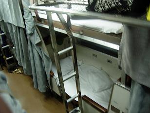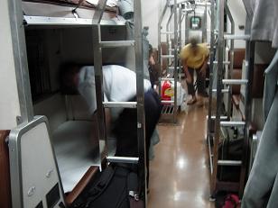 気持良く寝始め1時間経つただろうか。酷い揺れに起こされてしまう。遅れを取り戻すかのようにかなりスピードを出してるようだが、路盤が悪いのか揺れが堪らない。下の方からは荷物が揺れとともに騒音を放つ。その後はあまり寝付けず、寝られたのか、寝られなかったのか、熟睡することなく、朝を迎えるこことなる。 |