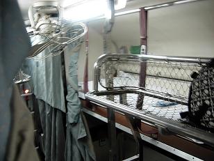 ちょっと車内を見物。 隣のエアコン無し2等寝台。 雨季のせいか気温も高くなく、外からの風が心地良い。 この時期はエアコンが無くても良さそう。 |