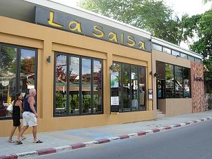 インピアナ・プーケット・カバナ直営の ラ・サルサが表通りに面する。 ちょうど、この真後ろが宿泊してるコテージで、 夜は生演奏が響く。 仕方ないので、毎晩、飲み歩いている(また、言い訳)。 |