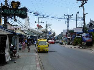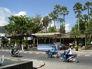 昼間は通行可能なバングラー通り タイは左側通行だが、時計回りで支障がないよう、 通りの出入りで対向との交差が無い様に、 この通りは右側通行になる。 ならば、反時計回りにすればと思うが、 周回道路の外側との出入りで交差することになるので、 なるほどと納得する。 |