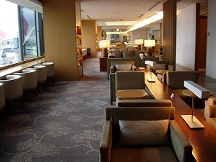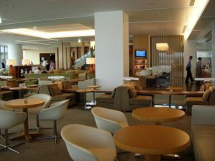 以前のファーストクラス、JGCラウンジの辺り。 飲食スペースを階上にし、ラウンジスペースと 分離したのも良い。 |