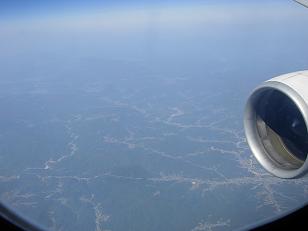 離陸17分後。福岡は近い。 時刻表上は1時間20分。 離陸から着陸までは53分だった。 |