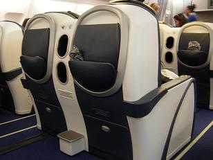 ここもフルフラット。 通路側にするのも、これでは通路に出るのも大変。 |