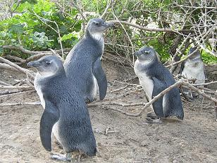 飽きもせずペンギンを見続けた。何か心が癒され、幸せな気分になってくる。 ペンギンは住宅地の庭に巣くうのもおり、朝に海へ向かい、夕に海から帰るペンギンの通勤風景も見られるらしい。機会があれば、是非、見てみたい。 |