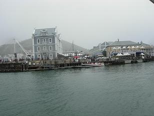 約30分のクルーズ。 港に着く頃はシグナルヒルも見え始め、 雨も弱まってきたような・・・。 すっかり、体が冷えてしまった。 |
