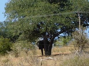 木陰から様子見するゾウ。 |
