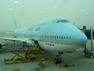 搭乗ゲートの36番から見えるのはKEの747。 |