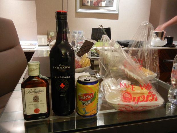 いつもの屋台でなく果物屋で買ったものです。 Mさんもラウンジで食べてることでしょう。 |