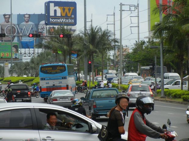パタヤへ向かうバスがちょうど発車する所を飛び乗ります。 |