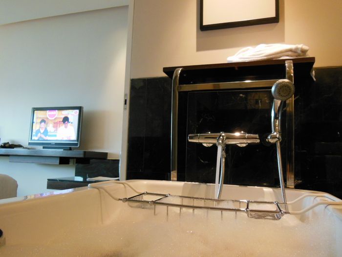 ホテルに戻ってお風呂。NHKのあさイチが流れてます。