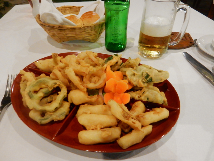 上のバーからビールを持ってきて、ここで飲みます。今夕はマンダレービールにしてみます。