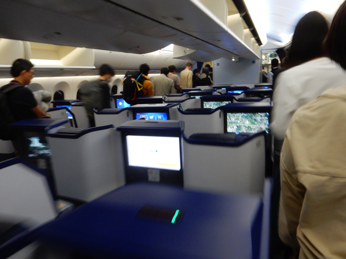 定刻どおりに到着。B787-9となり、やっとクレードルからスタッガードになりました。