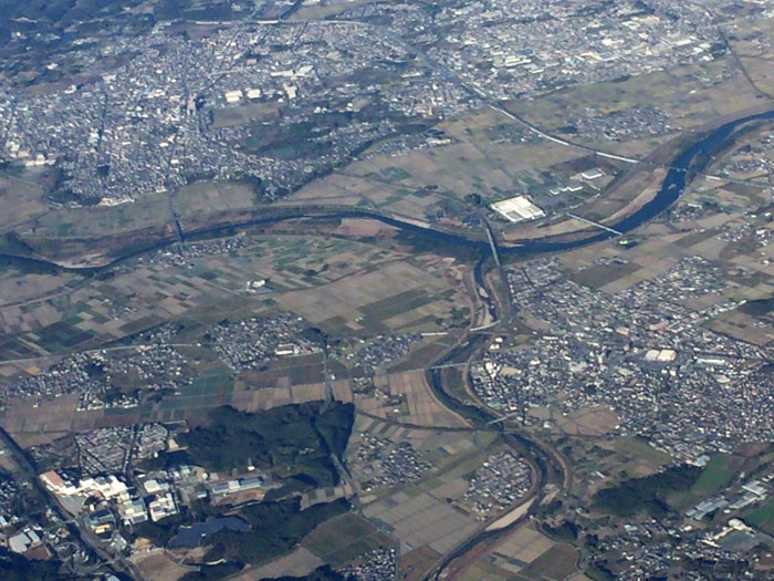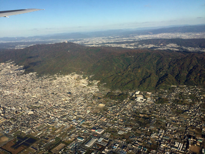 生駒山地を越えると右に角度を変え伊丹空港へアプローチします。
