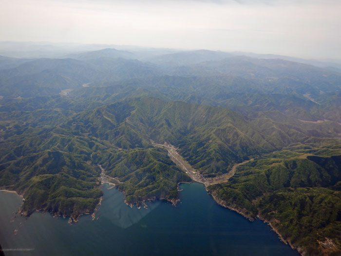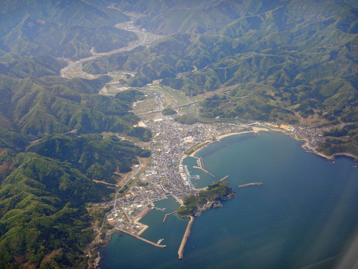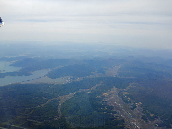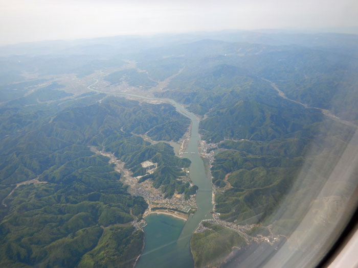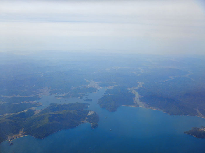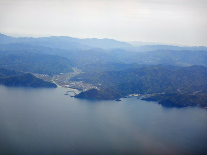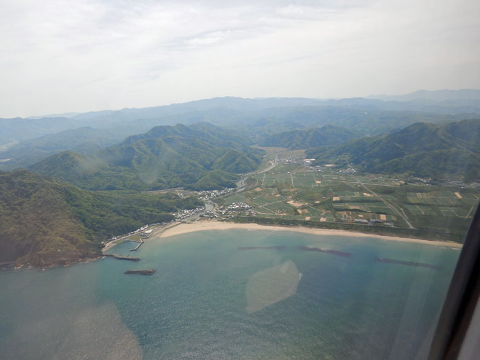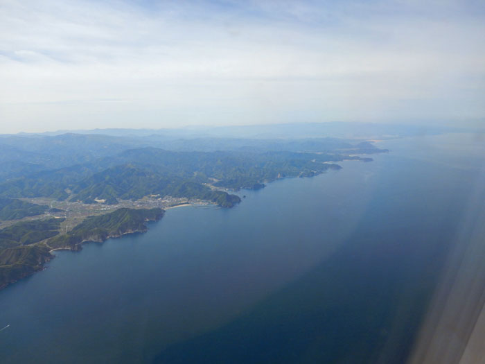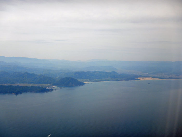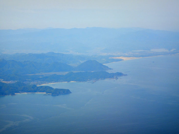 日本海沿いを飛び鳥取空港に着陸します。