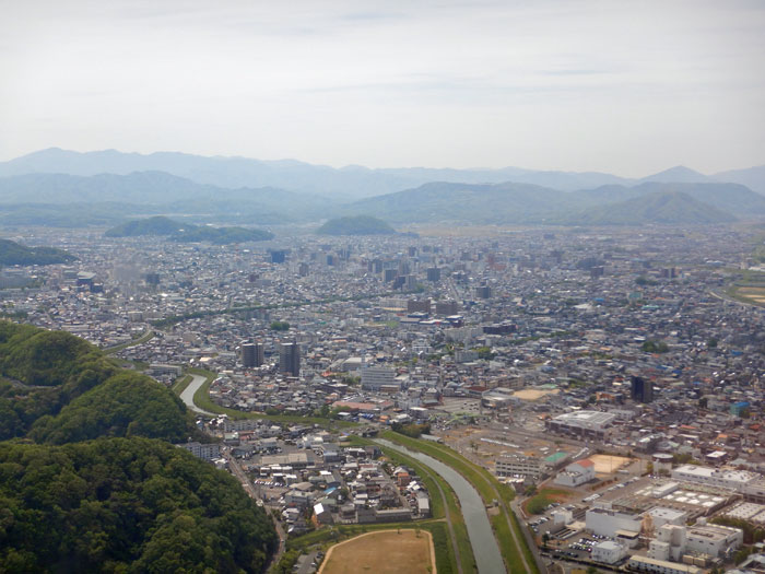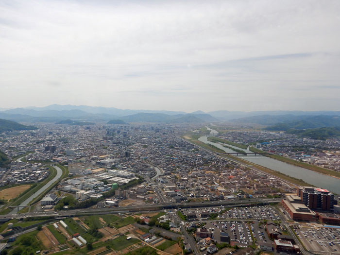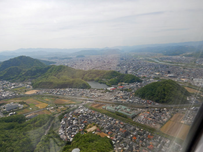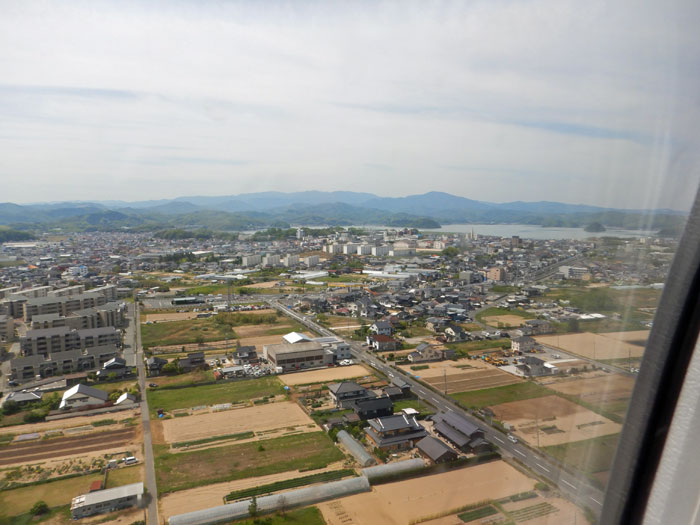 鳥取が見えてきます。白いのは砂丘かな。