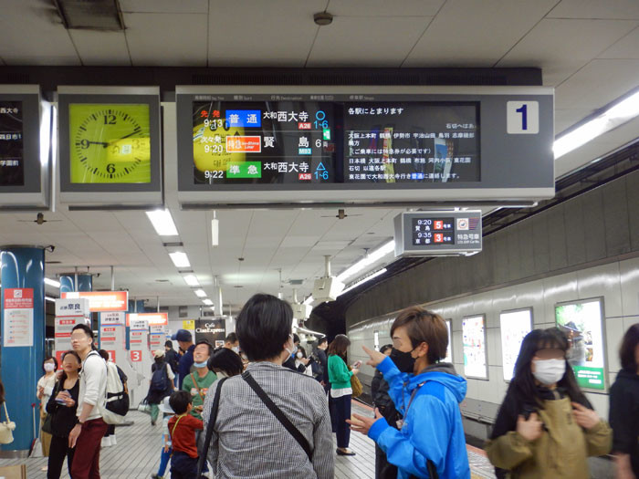 空席はあるものの、殆どの座席が埋まってます。大阪上本町、鶴橋を出ました。
