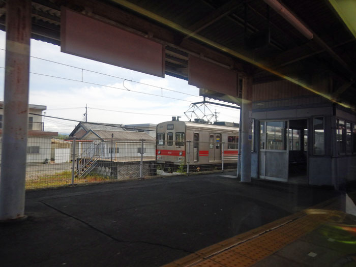 名張の8分後に伊賀神戸を通過。伊賀鉄道の車両が停まってます。