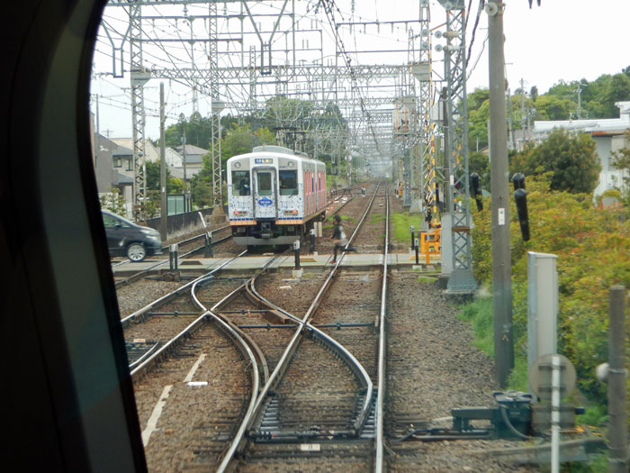 トンネルを出た西青山を通過。五十鈴川行きの急行とすれ違います。