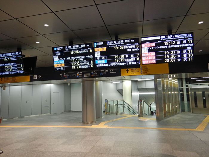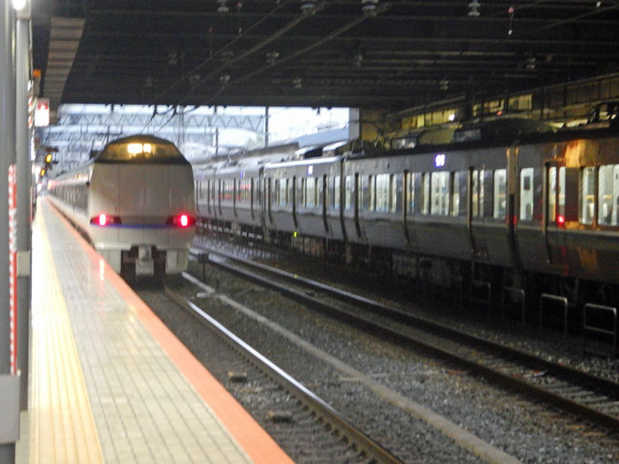 座れるかどうか分からない新快速でなく、阪急か京阪で大阪に出ようと思いましたが移動も面倒です。列車はサンダーバード37号金沢行き。
