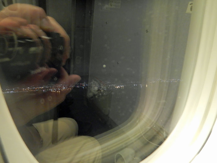 20時27分に出発。離陸後の到着予定時刻のアナウンスは40分遅れの23時15分です。