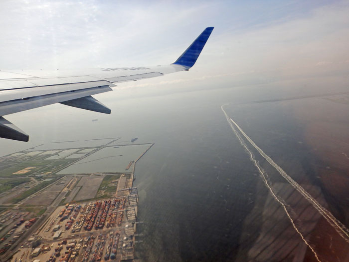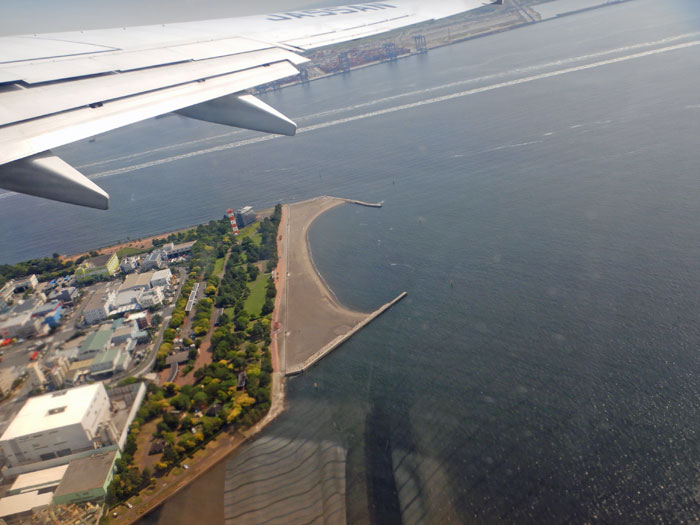 中央防波堤埋立地を見ながら右旋回。