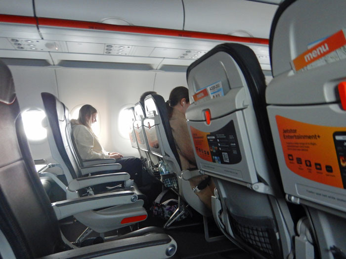 離陸から1時間が過ぎた頃にベルトサインが点灯。トイレの後は寝てました。いつの間にか通路側に他の客が座ってます。