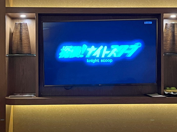 21時を過ぎると探偵!ナイトスクープが始まります。東京の放送は1ヵ月程遅いですが、このホテルでは大阪の放送がそのまま流れてます。