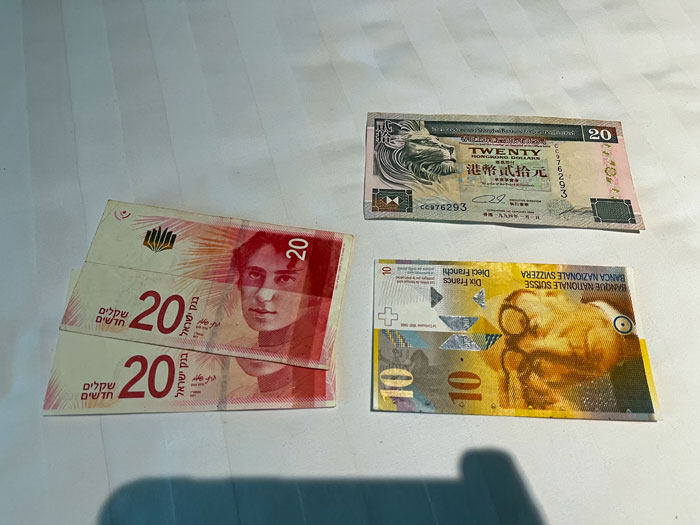 本店でも扱ってなかったイスラエル・シェケル。スワンナプーム空港にはエルアルが就航してるので両替できると思います。成田でも両替できますし。台湾でも受け取ってもらえなかった20香港ドルは偽札?19年前のスイス・フランも両替できません。