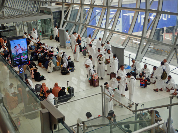 巡礼者が多いです。ジェッダ行きの臨時便(SV5792)のようです。この年のハッジは3日後の14日から19日だそうです。