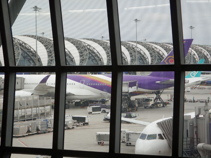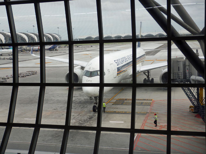 2時間遅れとなった便でスワンナプーム空港を離陸します。