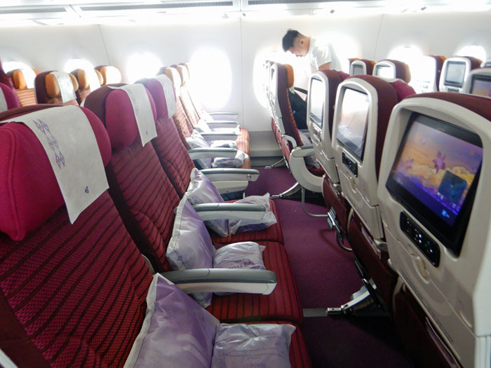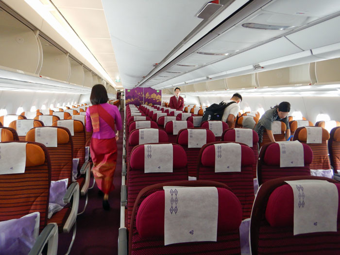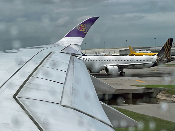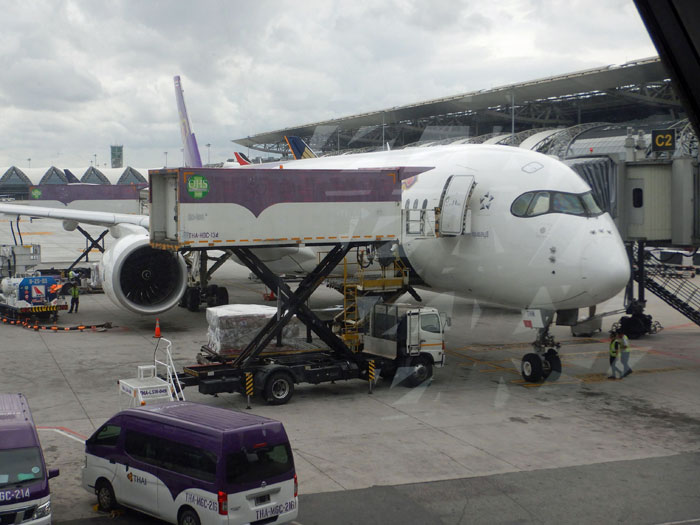 そして搭乗するタイ国際航空のA350が見えてきます。