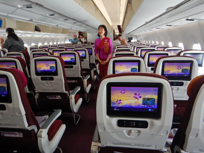 4日前にバンコクまで乗った同じ機(HS-THM)です。その間にシドニー、メルボルン、シドニー、ソウルを往復したようです。