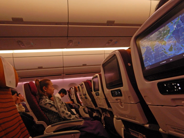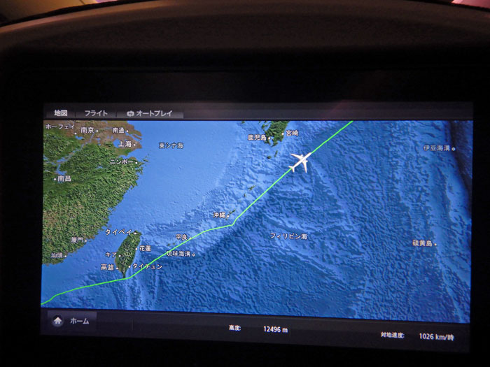一眠りすると離陸から4時間過ぎの日本時間は21時40分頃。